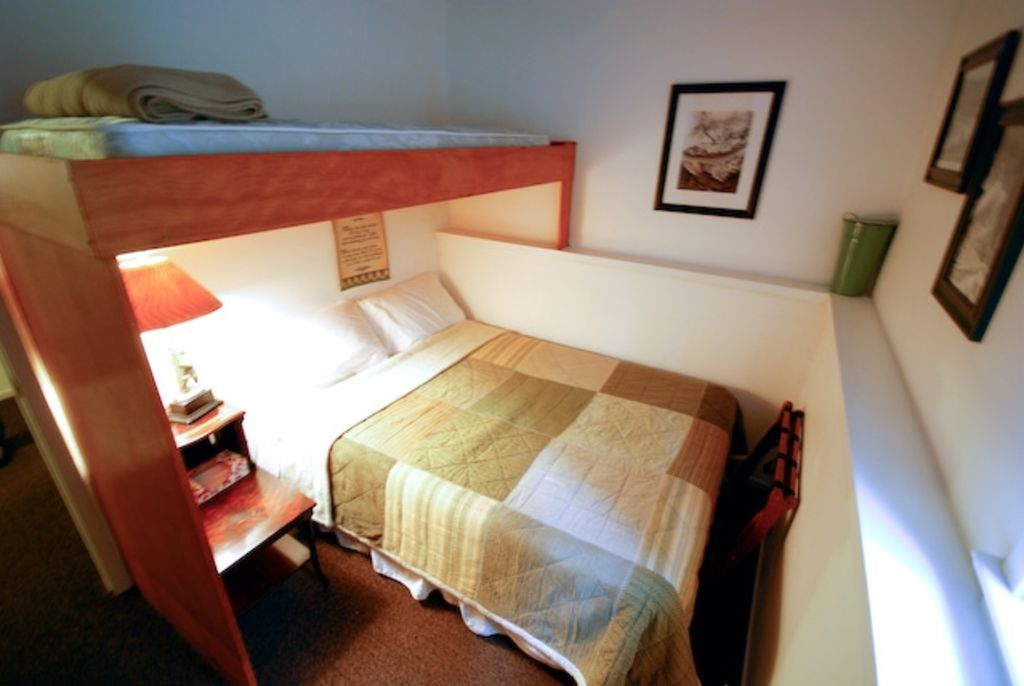 2 rooms with queen beds, 1 room with single/double trundle bed, 1 room with 3 level bunk, 1 loft with a full bed